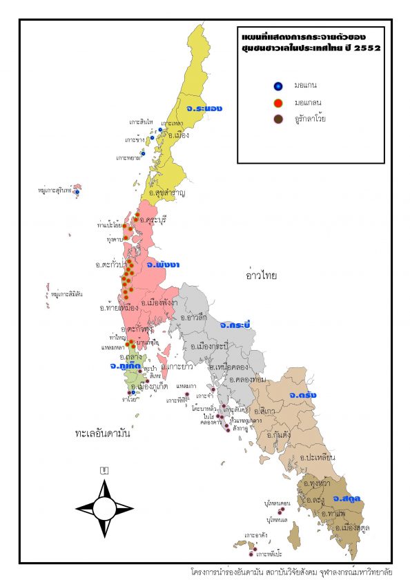 แผนที่แสดงการกระจายตัวของชุมชนชาวเลในประเทศไทย ปี 2552