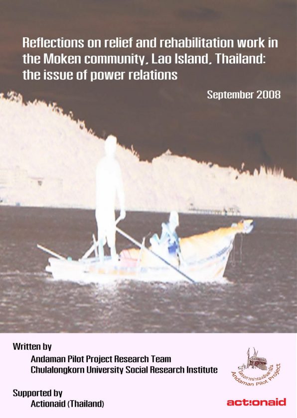 The Andaman Pilot Project Chulalongkorn University Social Research Institute. 2008. Reflections on relief and rehabilitation work in the Moken community, Lao Island, Thailand: the issue of power relations. Bangkok: Chulalongkorn University Social Research Institute.